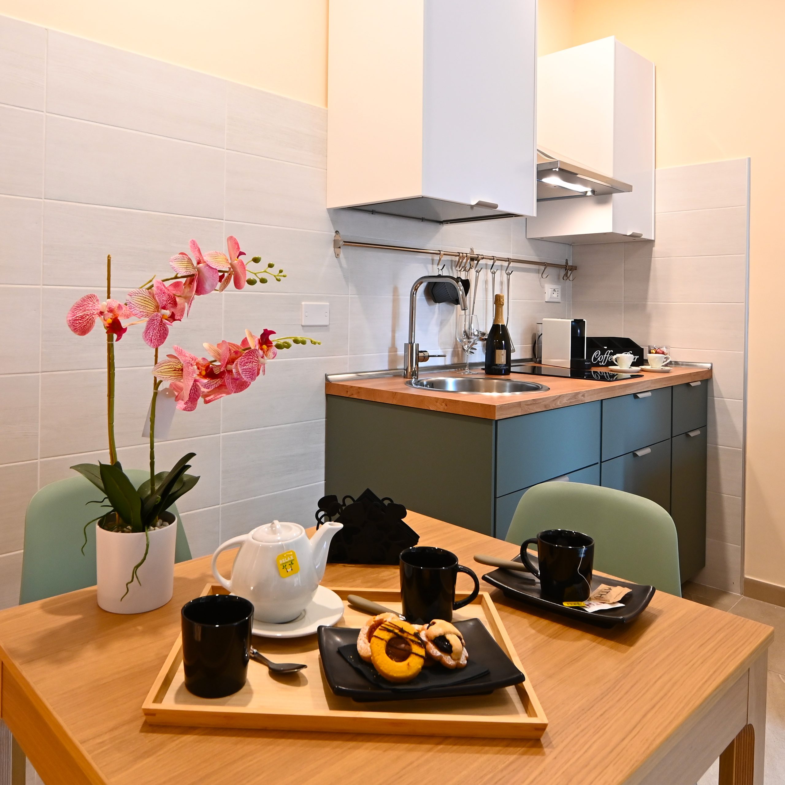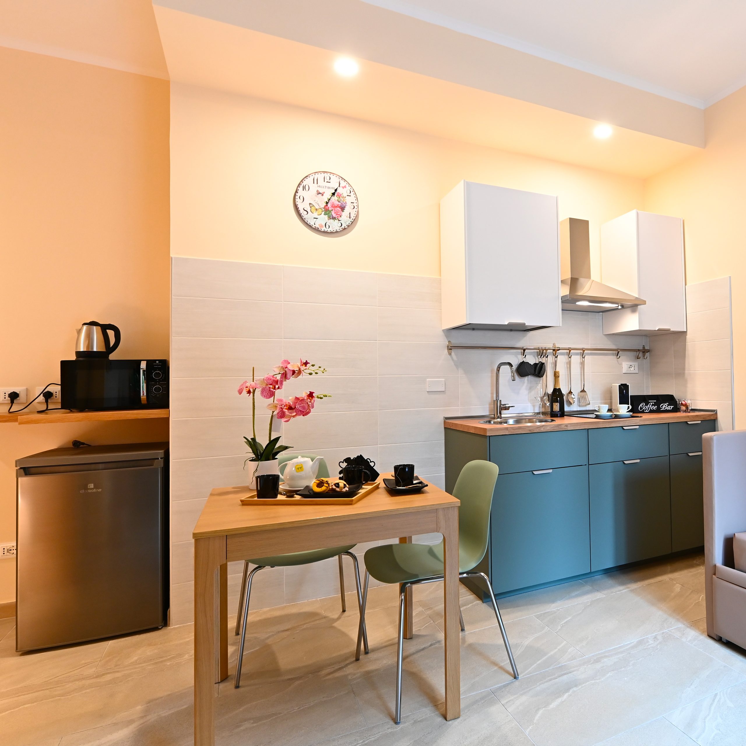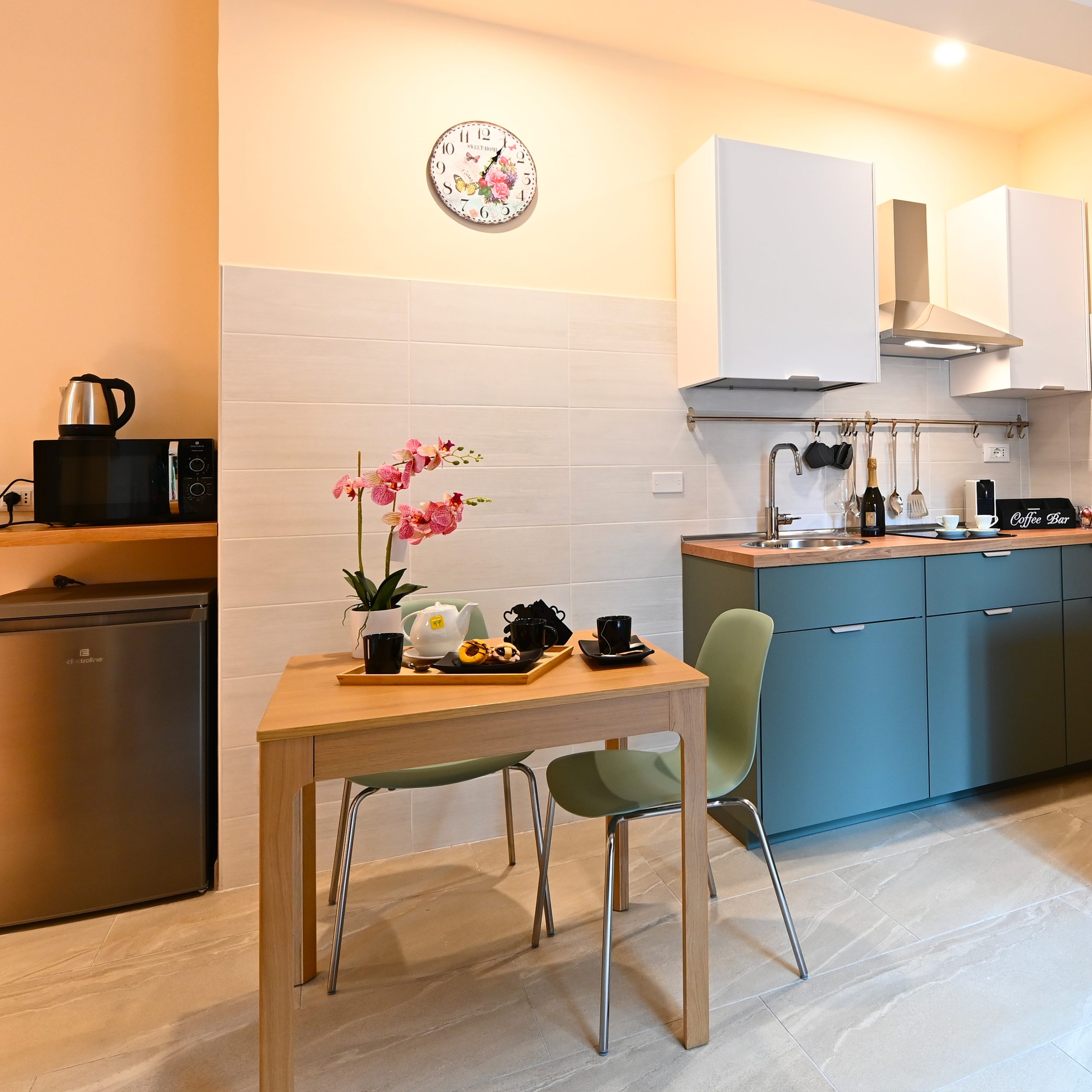 Goditi la libertà di cucinare quando vuoi, senza rinunciare all’ospitalità di un B&B. Troverai tutto ciò che ti serve per preparare colazioni abbondanti e cene romantiche.